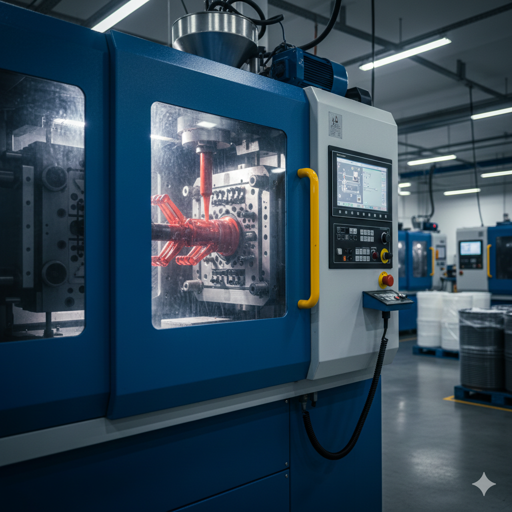 Modern makinelerde yüksek çevrim hızıyla kaliteli plastik parça üretimi.